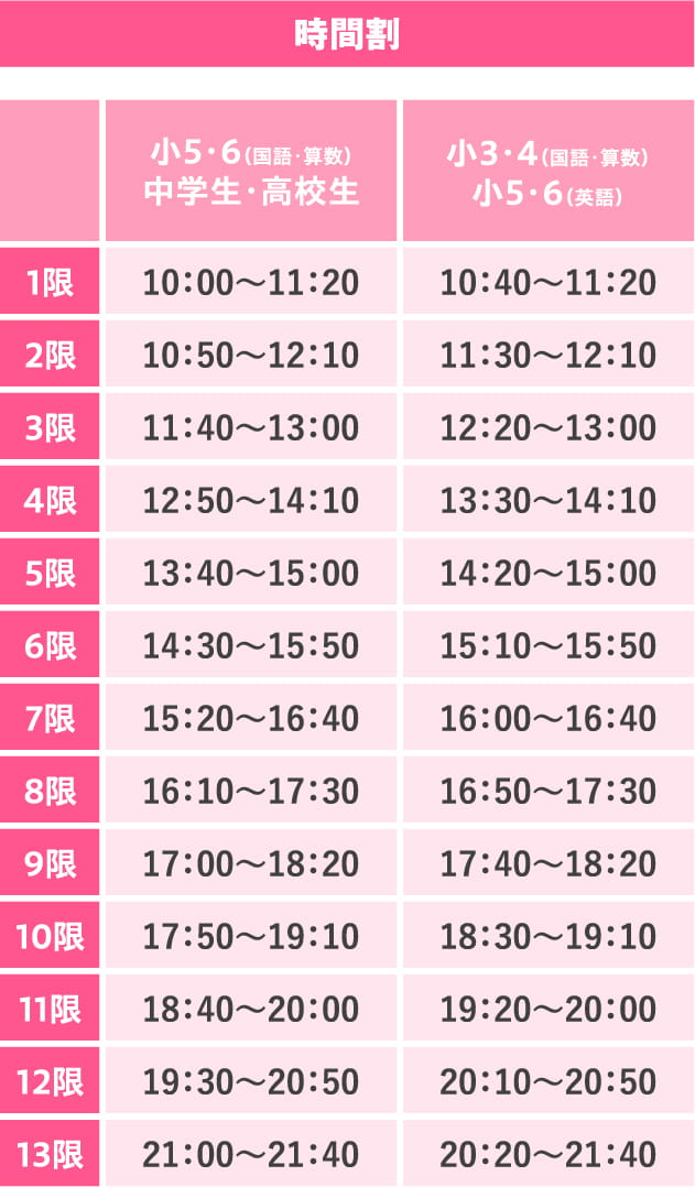 中学生の生徒様は定期テスト直前の日曜または土曜に3時間自習&質問教室を行う通称3耐(さんたい)に無料でご参加いただけます。また、有料で短時間で基礎単語を覚える『理社暗記コース』、授業を1回~増やす『特別追加授業』をご用意し、万全の対策を行っております。